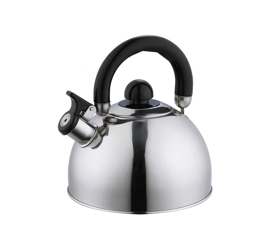 Ruostumattomasta teräksestä valmistettu viheltävä vedenkeitin, jonka tilavuus on 2,5 litraa. Profiloitu ja kohokuvioitu voileipäpohja lisää vakautta ja parantaa lämmönsiirtoa. Yhdellä kädellä käytettävä kaatonokka; eristetty kahva, joka taittuu alas tilaa säästävää säilytystä varten. Mitat pakattuna kahva taitettuna (L x S x K): 21 x 24 x 16 cm.
