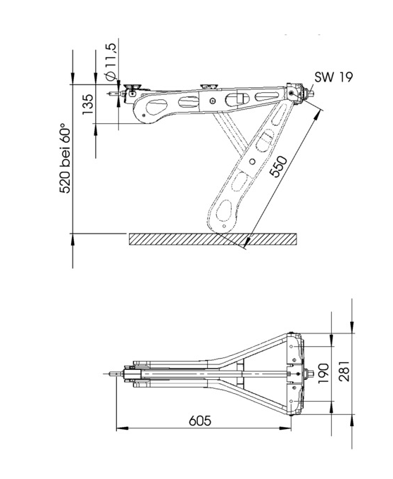 Helppo asentaa: Alustan kiinnityskorvakkeet mahdollistavat nopean ja helpon asennuksen. Yksi puoli on kytketty, toinen puoli kiinnitetään asuntovaunun lattiaan kahdella ruuvilla. Vakaa: AL-KO Stabilform -lisätukien ansiosta jopa 20% enemmän vakautta! AL-KO-vakiomuotoiset pistoketjut ovat erityisen vakaita puristusprofiilien, helminauhojen ja vahvojen, valssattujen trapetsikierteiden ansiosta. Pitkä käyttöikä kuumasinkityn pinnan takia. Info: tuet on tarkoitettu vain asuntovaunun tukeen. Niitä ei saa käyttää pistorasiaan renkaiden tai vastaavien vaihtamiseen. 45 ° ulospäin asennossa saavutetaan suurin hyötykuorma. Ulkoisen asennon pienentäminen alle 45 ° pienentää suurinta hyötykuormaa.